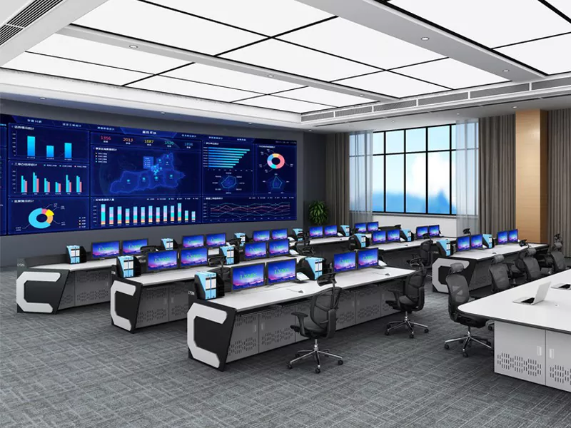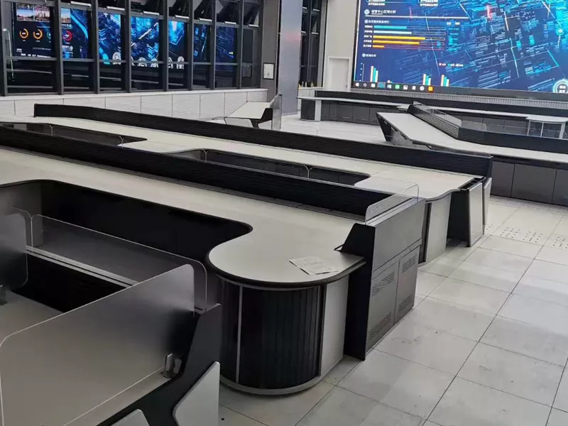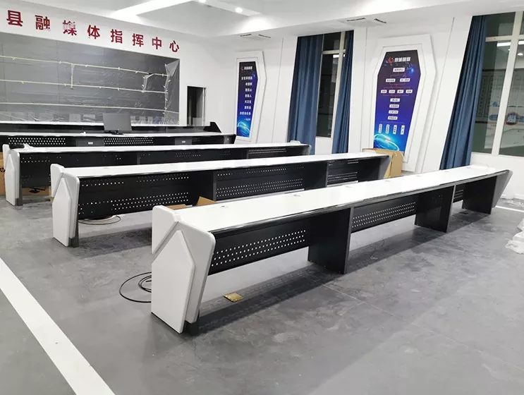 2.โครงสร้างและขนาด: เลือกการออกแบบตรง รูปตัว L รูปตัว U หรือแบบกำหนดเองตามพื้นที่ของศูนย์บัญชาการและความต้องการในการปฏิบัติงาน โดยเหลือพื้นที่เพียงพอสำหรับอุปกรณ์และบุคลากร